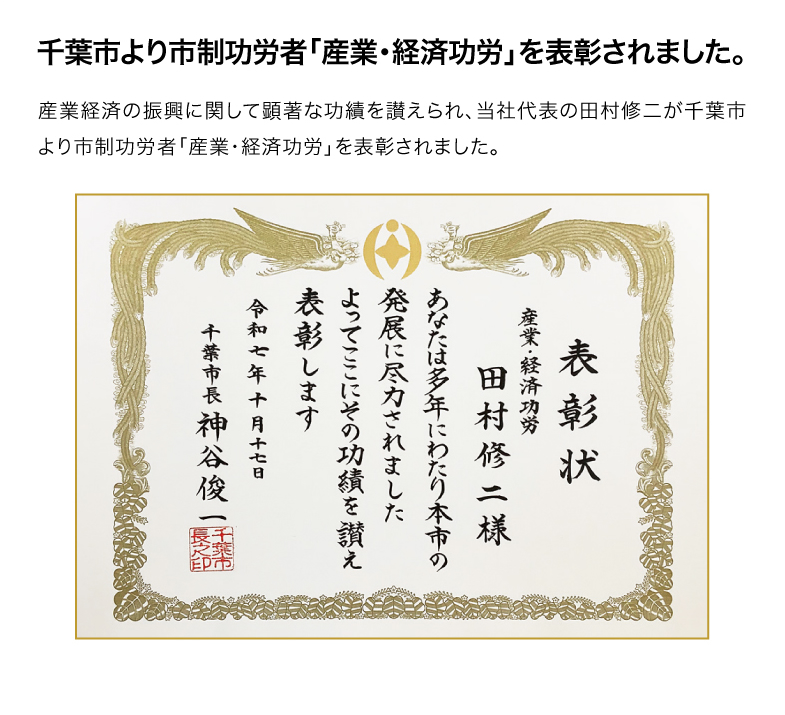 千葉市より市制功労者「産業・経済功労」を表彰されました。